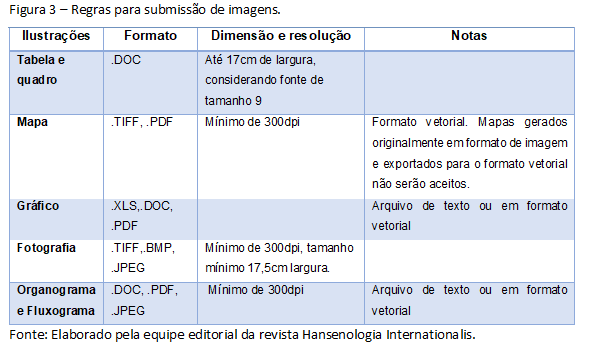 Como parte do processo de submissão, os autores são obrigados a verificar a conformidade da submissão em relação a todos os itens listados a seguir. As submissões que não estiverem de acordo com as normas serão devolvidas aos autores.- A contribuição é original e inédita, e não está sendo avaliada para publicação por outra revista e não o será, enquanto sua publicação estiver sendo considerada pela revista Hansenologia Internationalis. Esse item não se aplica a documentos que estiverem depositados em repositórios de preprint.